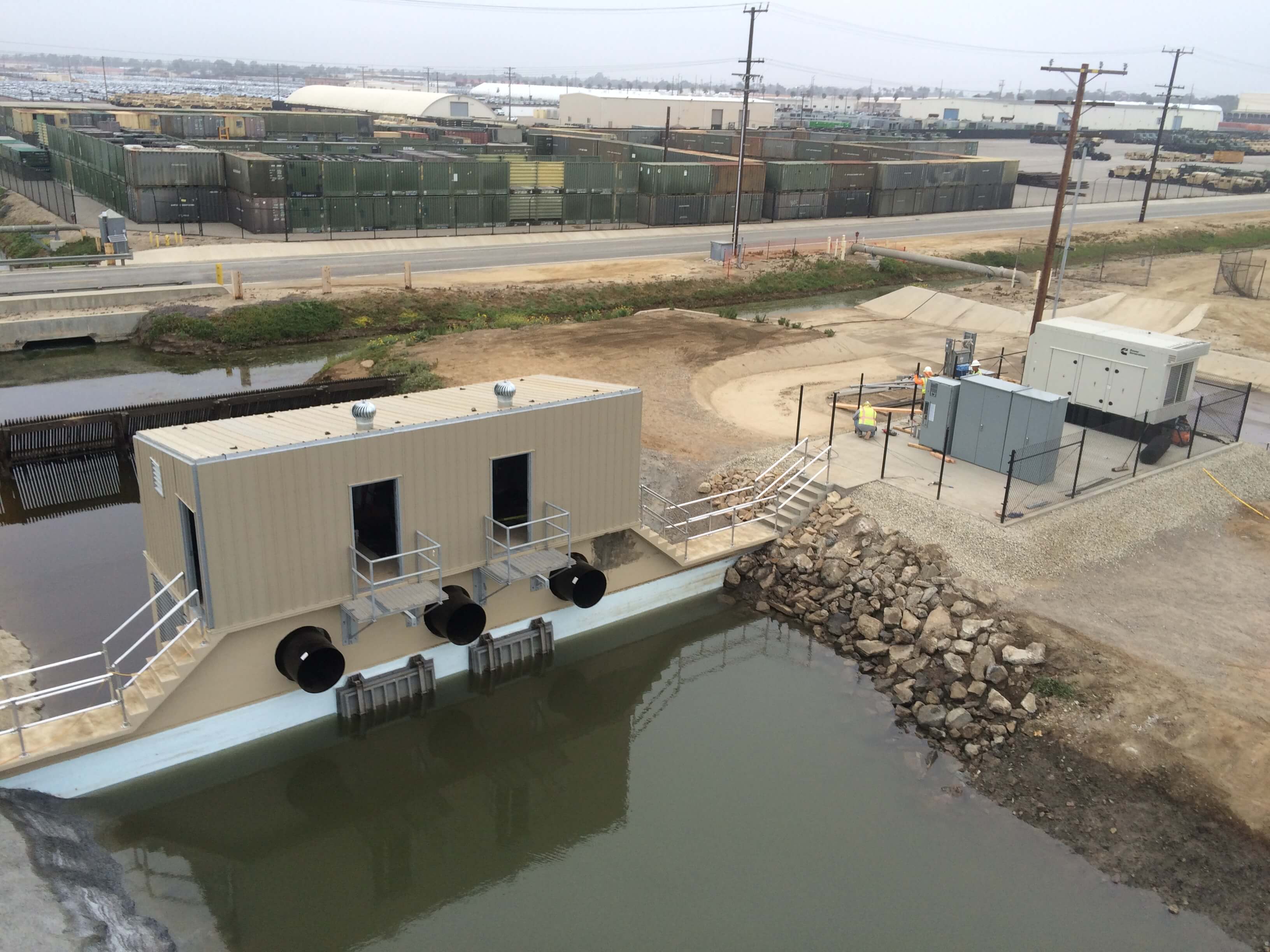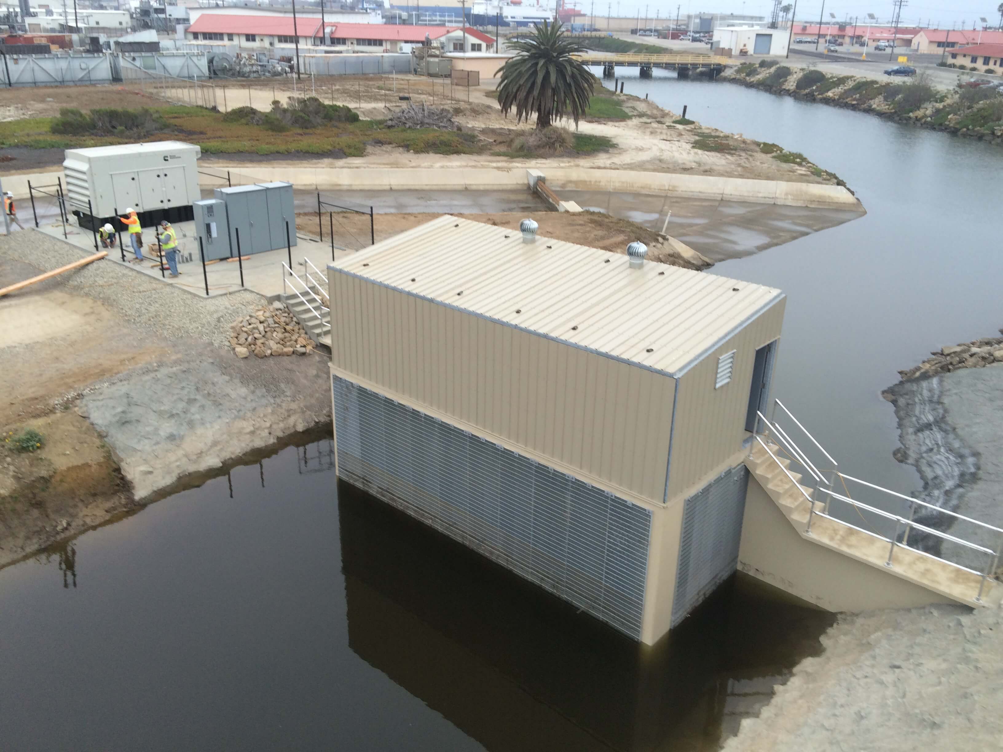 The tide gate enclosure project executed by CJW Construction, Inc. was a design-build task order for the United States Navy, involving the rehabilitation of a pump station that controlled fresh water drainage outflow to the Pacific Ocean. Tide gates are used to control ocean water from leaking back to the drainage water.