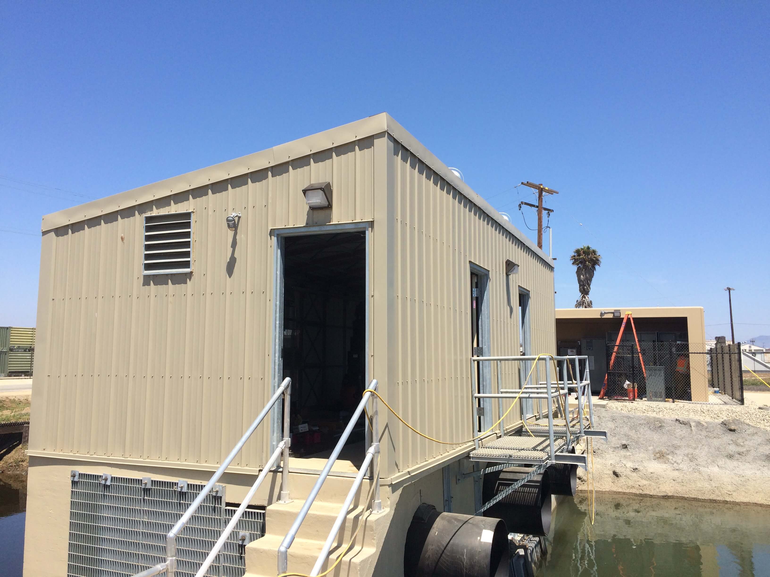 Based on discussions with a Navy representative at pre-bid time, CJW selected Kelly Klosure to provide the pump house enclosure. According to CJW, the biggest benefit of the Kelly Klosure building was its turnkey design since it came complete with removable roof capacity and all required louvers, doors, hardware and vents.